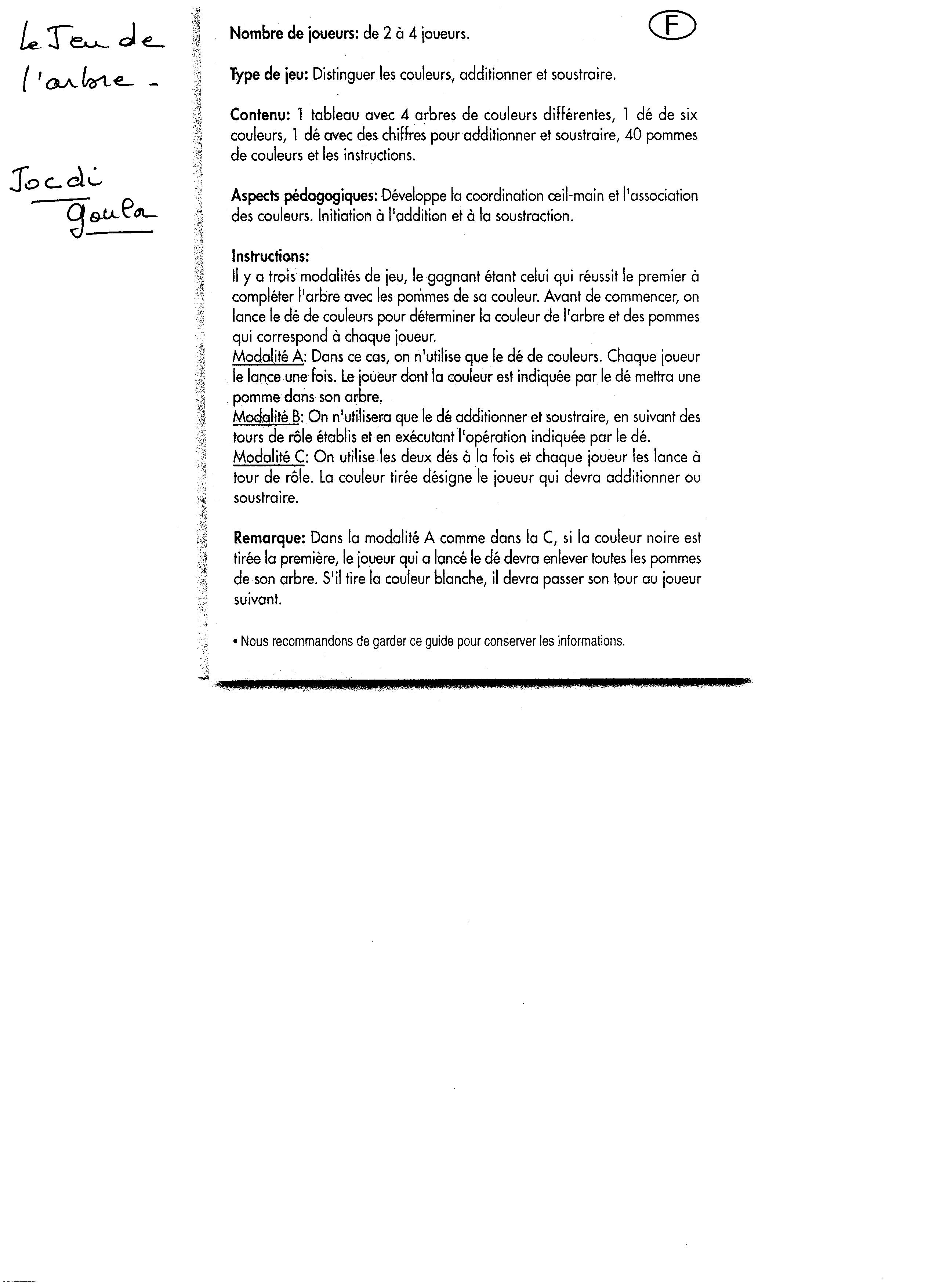 | JEU DE L'ARBRE | ||||